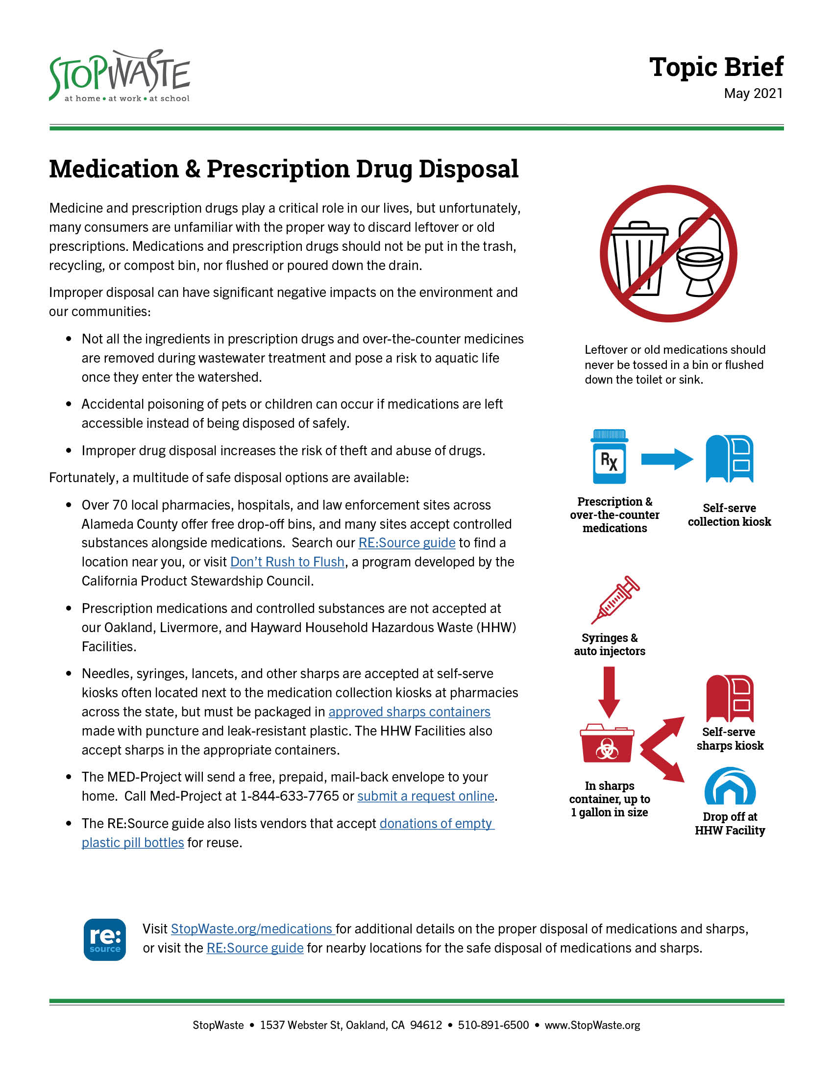 Medicine and prescription drugs play a critical role in our lives, but unfortunately, many consumers are unfamiliar with the proper way to discard leftover or old prescriptions. Medications and prescription drugs should not be put in the trash, recycling, or compost bin, nor flushed or poured down the drain.