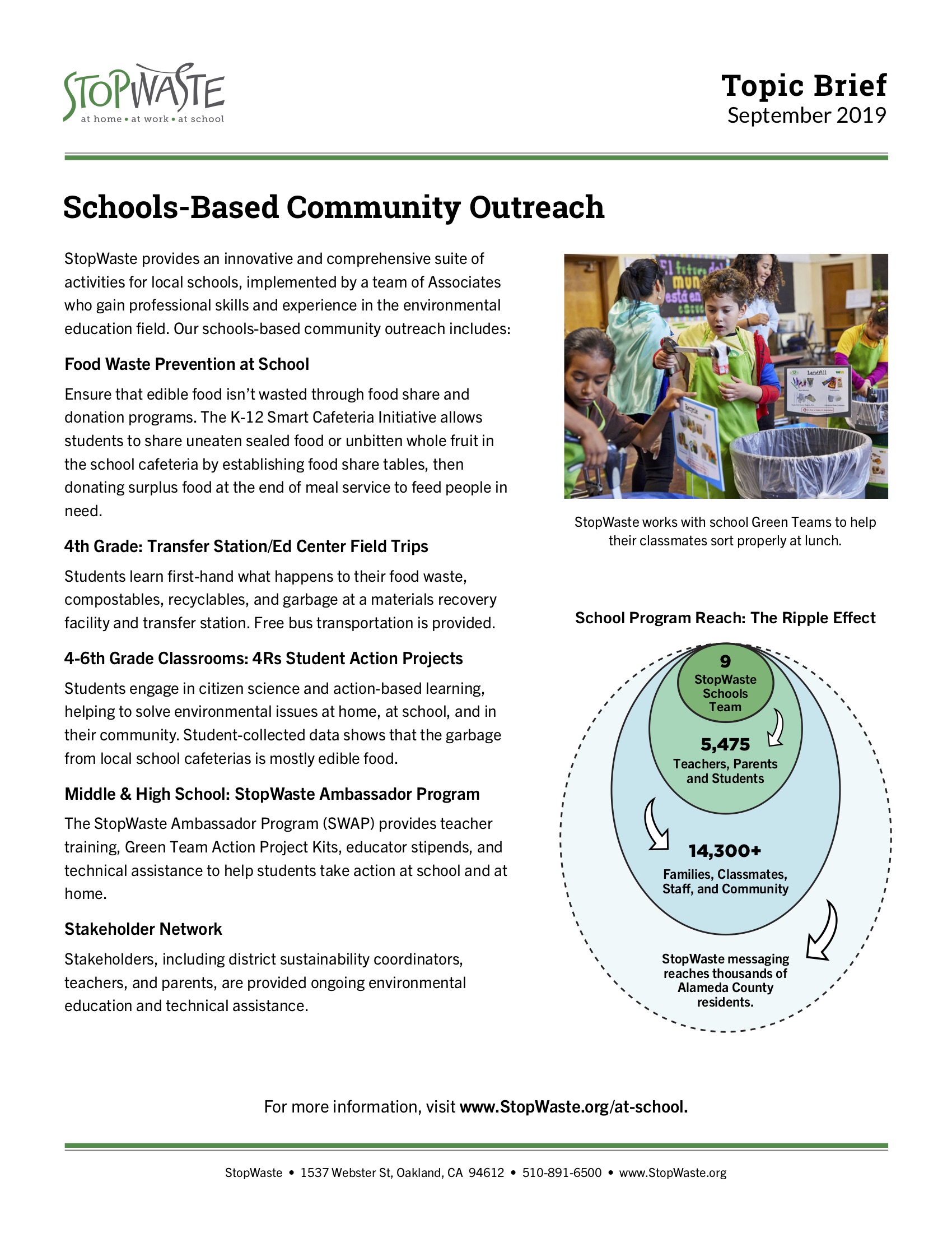 StopWaste provides an innovative and comprehensive suite of activities for local schools, implemented by a team of Associates who gain professional skills and experience in the environmental education field.