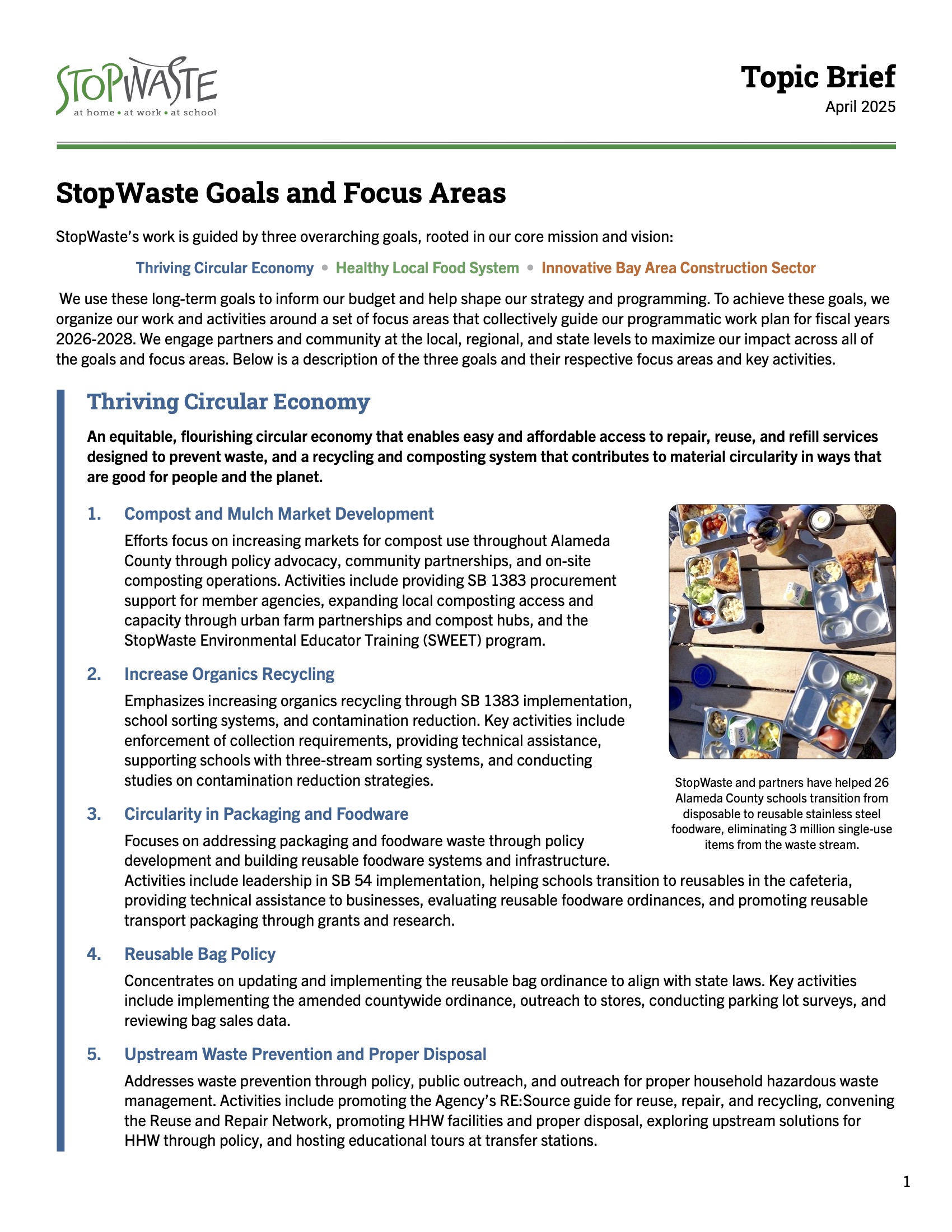 StopWaste’s work is guided by three overarching goals, rooted in our core mission and vision: