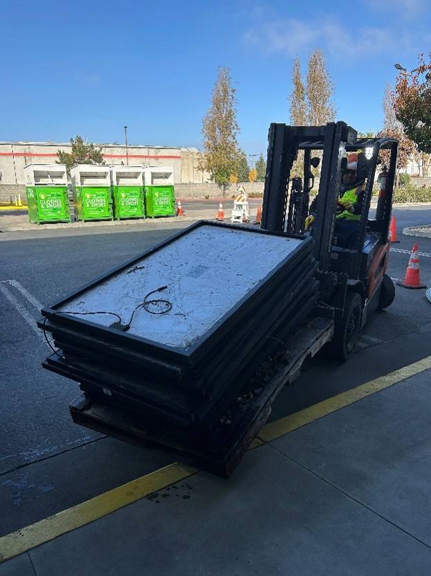 In partnership with the California Product Stewardship Council, StopWaste hosted a free, one-day residential solar panel collection event at the Fremont Recycling & Transfer Station for Alameda County residents. Event staff collected 171 solar panels, and of those, 47 panels were tested and confirmed suitable for reuse, while 124 panels were designated for recycling.