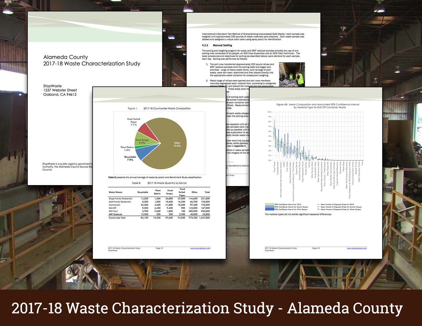 The Study, which uses industry-standard sampling techniques and statistical analysis to estimate the composition of the waste stream and tonnages by material and generating sector, offers a valuable snapshot in time of the materials that comprise Alameda County’s residential and commercial waste streams.
