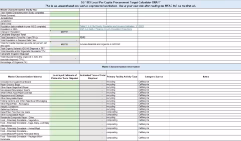 This tool allows jurisdictions to input local data from their waste characterization study and other waste streams as well as population to estimate a local per capita procurement target (tons per person).