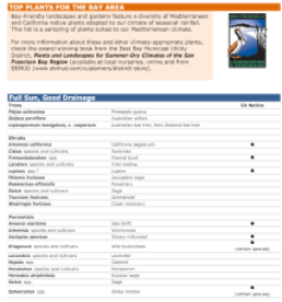- Top Plants for the Bay Area: Find California natives and other plants suited to the Bay Area’s Mediterranean climate.