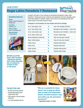 Hogar Latino Panaderia Y Restaurant serves Honduran and Salvadoran food and, arguably, some of the best tamales, juices and frozen treats in Oakland. They switched from disposable plastic and paper cups and plastic utensils for dine-in to reusable tumblers, mugs and real silverware, saving over $3000 annually.