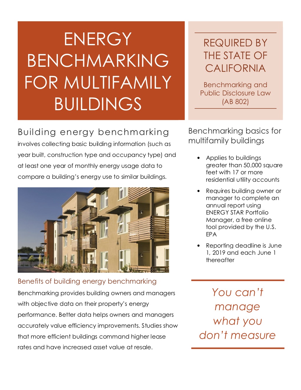 - Applies to buildings greater than 50,000 square feet with 17 or more residential utility accounts