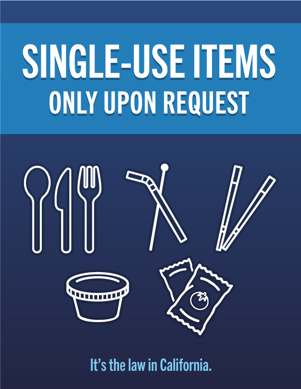 Breadcrumb Home Resource Example Signage: Single-Use Items Example Signage: Single-Use Items Updated Mar 29, 2023 Download example signage for your establishment to help communicate that single-use items are only provided upon request. The PDF contains multiple color schemes, and may be modified as needed. Downloads & Attachments Example-On-Request-Signage-03-2023.pdf Image