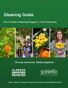 After over a decade of gathering backyard fruit in Alameda and donating it to the Alameda Food Bank (over 23 tons to date!), Alameda Backyard Growers decided it was time to begin nurturing and collaborating with other gleaning groups in the East Bay and beyond. The Bay Area is blessed with an abundance of backyard fruit, and, working in collaboration with StopWaste, we hope every community has the knowledge and opportunity to collect this fresh produce and help feed the hungry in their area. This Gleaning Guide provides information about how to start a gleaning program in your community.