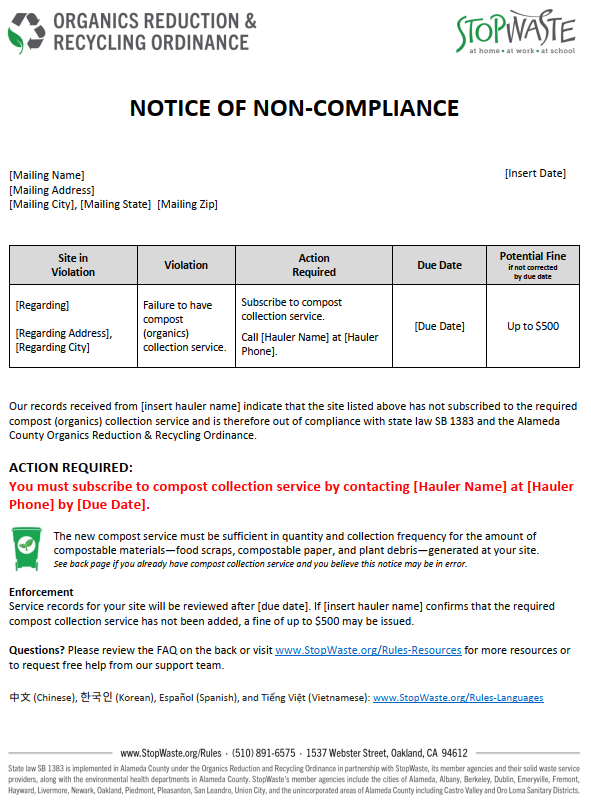 See more information about the requirements of SB 1383/ORRO at www.StopWaste.org/Rules.