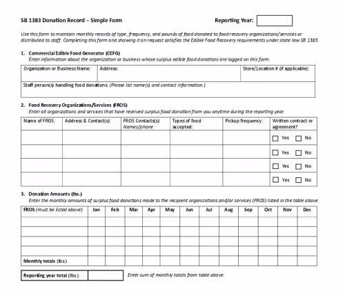 The simple form is recommended for sites who may not have frequent donations in a single month, and provides enough space to record an entire year's worth of donation data on a single page.
