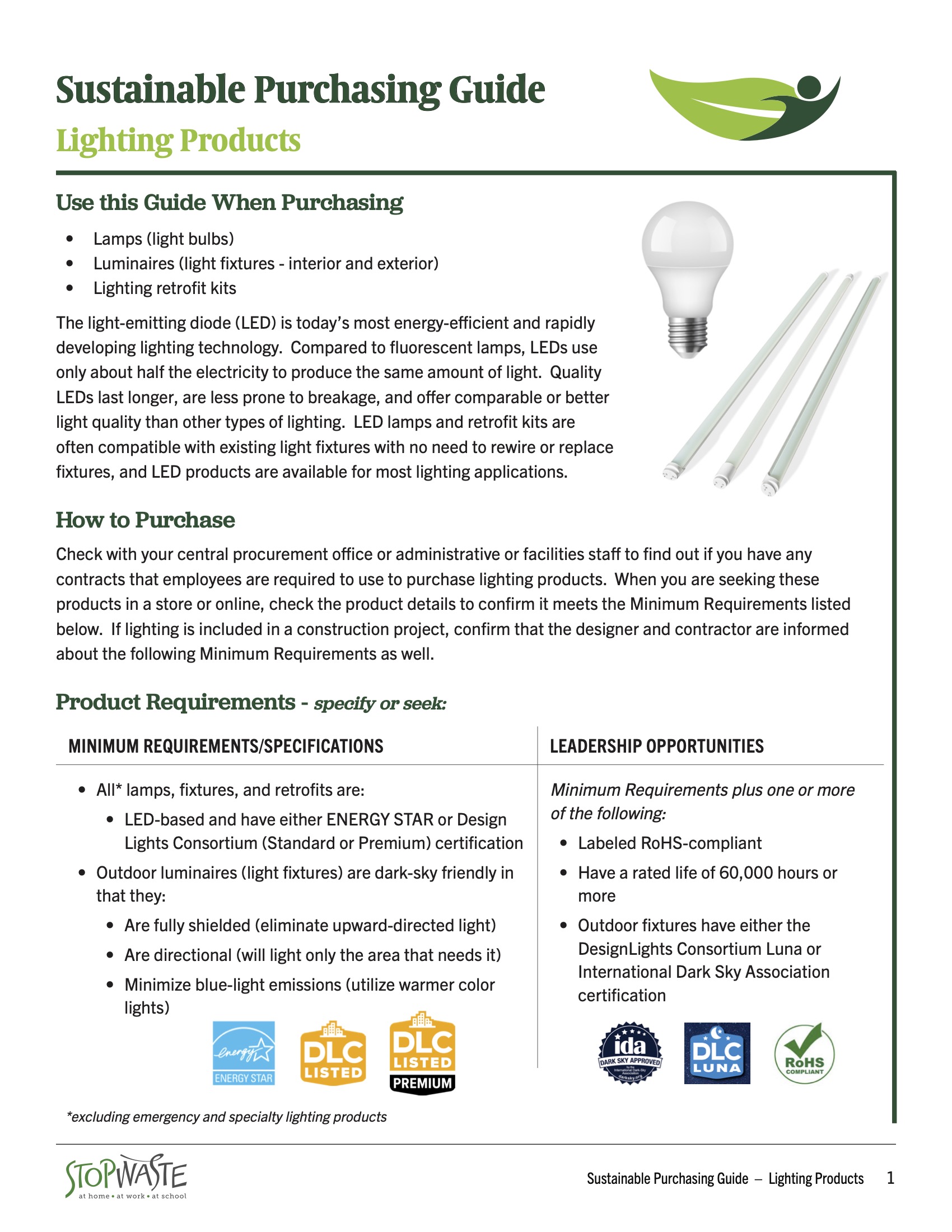 The light-emitting diode (LED) is today’s most energy-efficient and rapidly developing lighting technology. Compared to fluorescent lamps, LEDs use only about half the electricity to produce the same amount of light. Quality LEDs last longer, are less prone to breakage, and offer comparable or better light quality than other types of lighting. LED lamps and retrofit kits are often compatible with existing light fixtures with no need to rewire or replace fixtures, and LED products are available for most lighting applications.