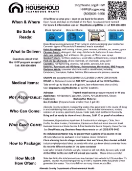 At its meeting on May 28, 2014, the Alameda County Waste Management Authority Board adopted a new household hazardous waste fee of $9.55 per year per residential unit. The fee goes into effect July 1, 2014 and will be collected via the property tax roll. Revenue from the fee will be used to support the countywide household hazardous waste program, which provides safe, legal, environmentally sound collection and disposal services for residential household hazardous waste such as paint, solvents and pesticides.