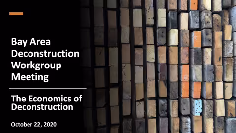 Wednesday, October 21, 2020 10:00 – 10:10 – Welcome & Brief Introductions, Angela Sandoval, Manager, and Timonie Hood, Zero Waste Section, U.S. EPA Region 9 10:10 – 11:30 – Rapid Overviews - The Economics of Deconstruction Nicole Tai, CEO, GreenLynx and Board Member, Reuse Alliance, San Francisco Bay Area Karen Jayne, Executive Director, Stardust, Phoenix Shawn Wood, Construction Waste Specialist, City of Portland, Portland Anne Nicklin, AIA, Director of Workforce Training and Deconstruction Services, Evanston Rebuilding Warehouse, Chicago Jeff Carroll, MBA, LEED AP, Co-Founder, Urban Wood